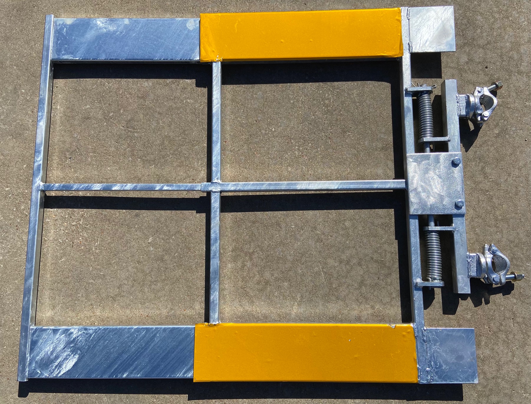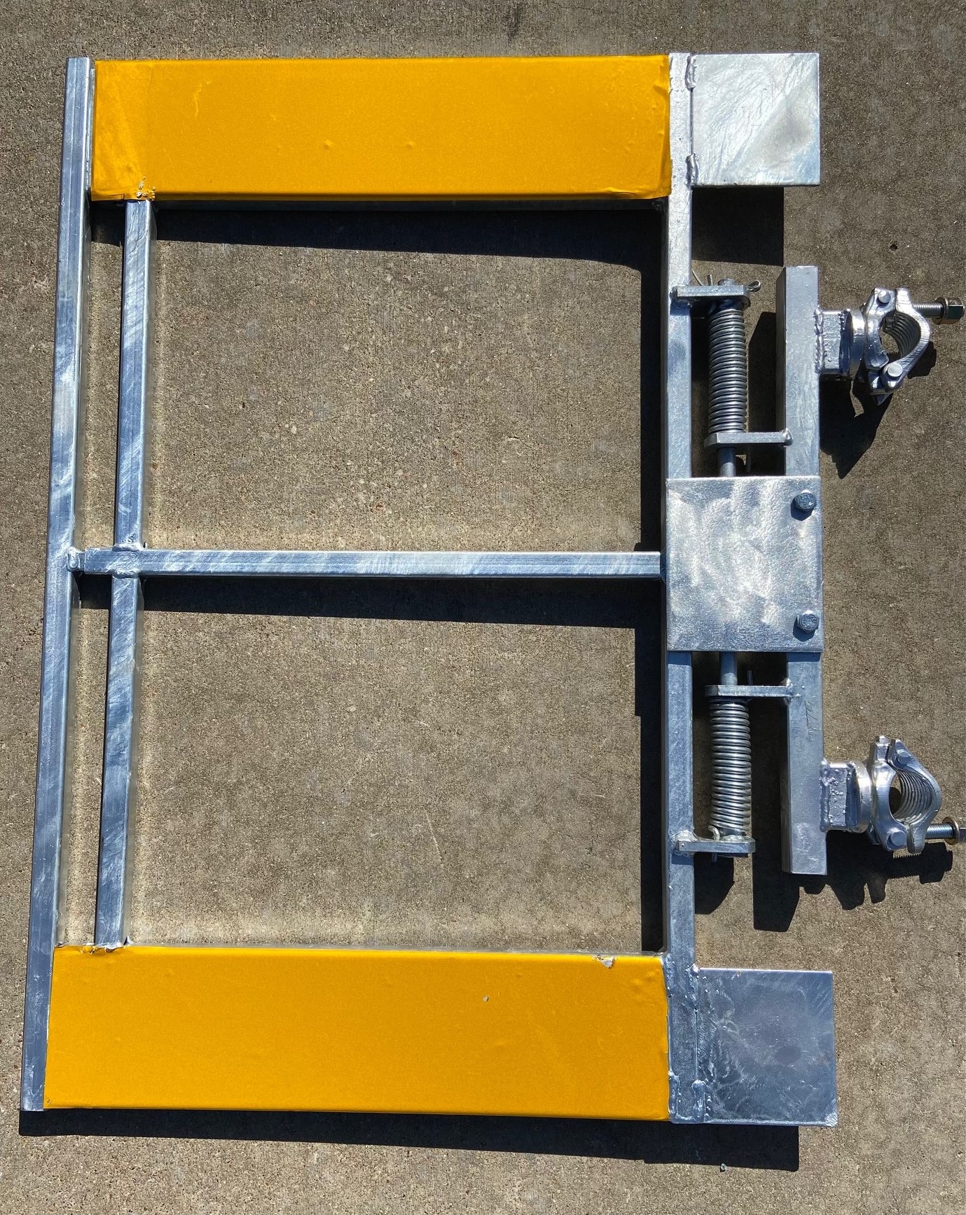 Universal's Scaffold Safety Swing Gate - Adjustable with Toeboards is adjustable from 31" to 48" fully expanded. This gate is reversible and durable in order to provide easy ladder access to the scaffold build. With a heavy spring attached, the gate shuts automatically when opened for immediate fall protection after providing access.