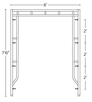 Universal's Sidewalk Canopy Scaffold Frames are 6' wide x 7'6" tall and are used at street level to create a pedestrian walkway that is safe from fall hazards from an ongoing construction project. Canopy frames are used for residential & commercial jobs of all types including brick mason work, stucco, carpentry or contractor work.
