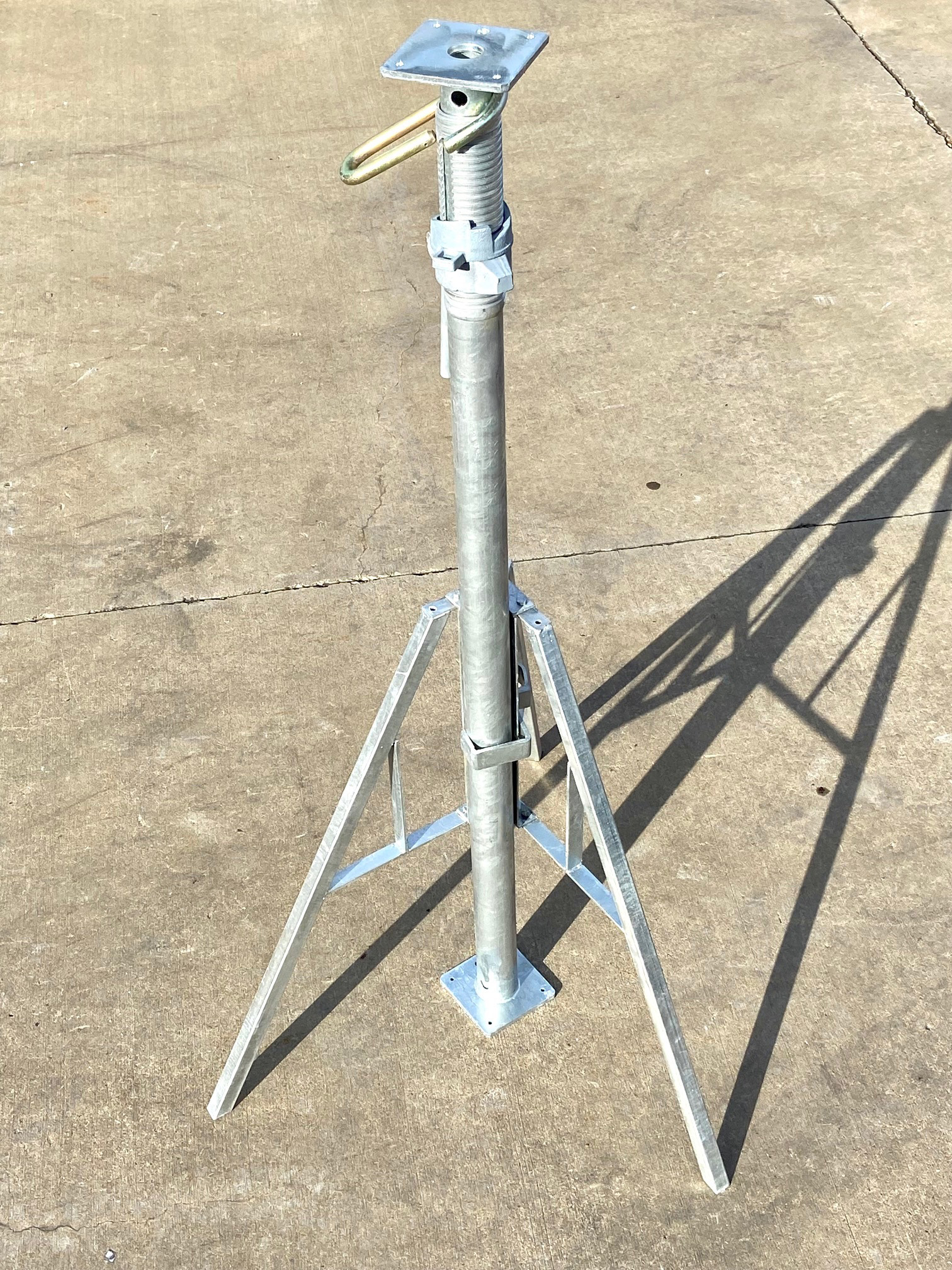 Universal Scaffold & Equipment's Post Shore Tripod was developed to provide additional support and stability to a singular post shore. The tripod also braces a singular post shore for a horizontal load. The tripod fits a variety of different sized post shores from 1.5" OD to 4" OD. This provides a simple and fast solution to keep post shores upright during the setup process.